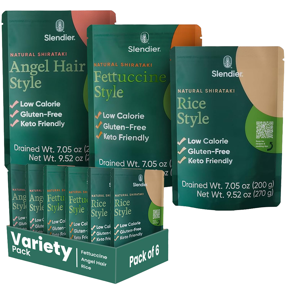 Discover a delicious mix of Slendier’s most popular products with the Shirataki Variety Pack. Perfect for those who want to experience a range of low-calorie, low-carb options, this pack includes 2 x Angel Hair, 2 x Fettuccine, and 2 x Rice—providing a versatile selection for stir-fries, pasta dishes, and more. With only 10 calories per serving, you can indulge in your favorite dishes without the guilt.
